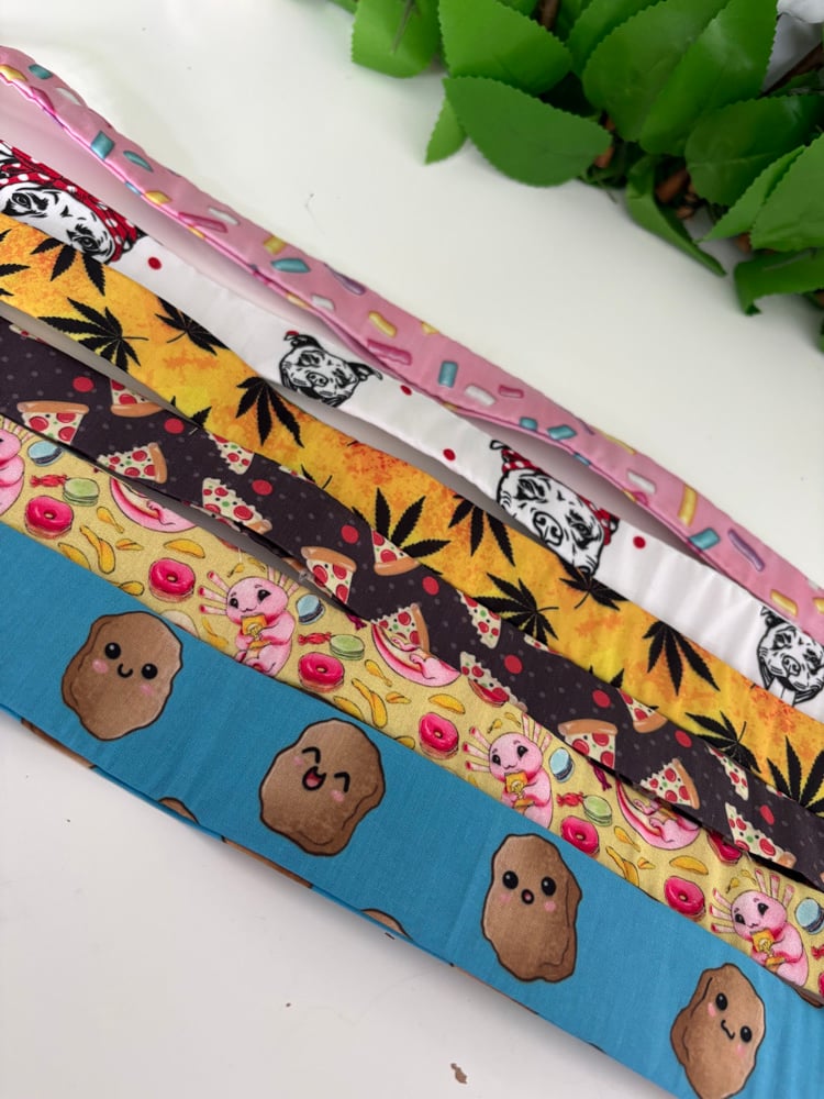 Items are all 25mm in width and can come in either silver, black or gold hardware however, this is not optional it will vary depending on the fabric and what suits best.